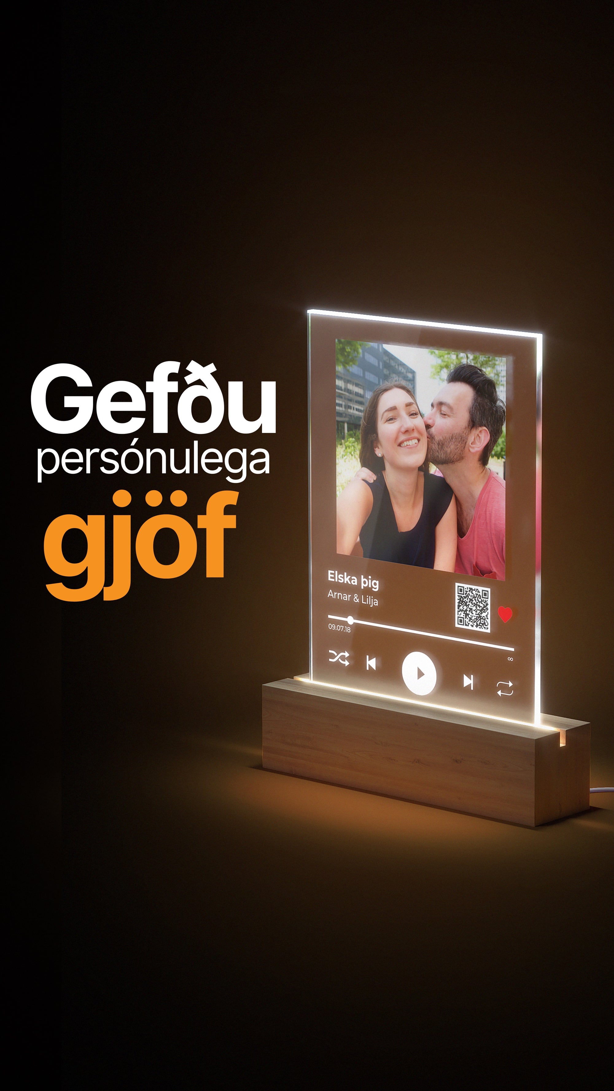 Tónlistarplattinn er einstök hönnunarvara sem fangar þitt uppáhalds lag eða minningu á sjónrænan hátt. Hvort sem þú vilt dekra við sjálfan þig eða kaupa ógleymanlega gjöf, þá er Tónlistarplattinn fullkominn. Þú hannar útlitið, velur lag og við sjáum um rest!